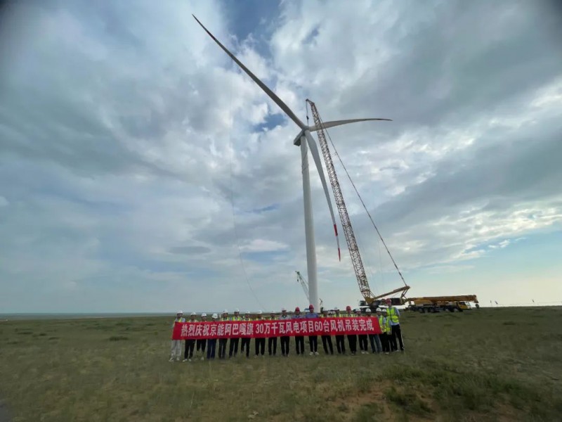 该项目的圆满完成完成,意味着阿巴嘎旗150万千瓦大基地项目已完成大半风电机组吊装工作,向全面进入调试并网发电阶段迈进了一大步,标志着阿巴嘎旗150万千瓦大基地项目建设取得阶段性成果。