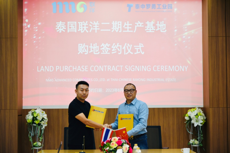 6月29日,联洋新材全资子公司泰国联洋有限公司与泰中罗勇工业园开发有限公司在园区举行了隆重的购地签约仪式,泰国联洋本次购地将用于高性能复合材料二期项目的建设,是公司战略发展的重要一步,将进一步提升和巩固优质产能,进一步加强公司在国际市场的竞争力。