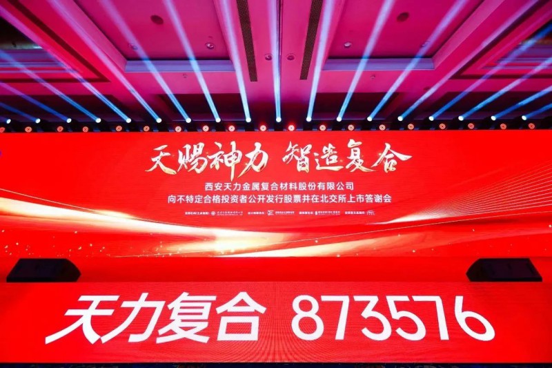 2023年7月12日,由海通证券独家保荐及承销的天力复合正式登陆北交所。本次公开发行股票数量为 1300 万股,发行价格 9.35 元 / 股,发行市盈率 16.87 倍。此次,公司拟募资 1.20 亿元,计划投资 " 清洁能源用金属复合材料升级及产业化项目 " 和 " 研发中心升级建设项目 " 等,用于持续优化公司产业生产配套能力,加强公司研发硬件设备和软实力。