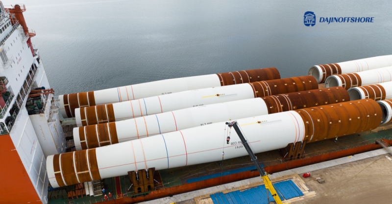 本次交付的8根单桩最大直径为10m,板厚达115 mm,全部由大金重工蓬莱基地生产。作为大型管桩产品领域(XXL单桩)中,欧洲风电业主认可的唯一中国供应商*,大金重工一直坚持两海战略,顺应国际市场需求,未来还将布局唐山海工装备制造基地,并规划开发生产直径15米,重量3000吨、长度150米的XXXL单桩。