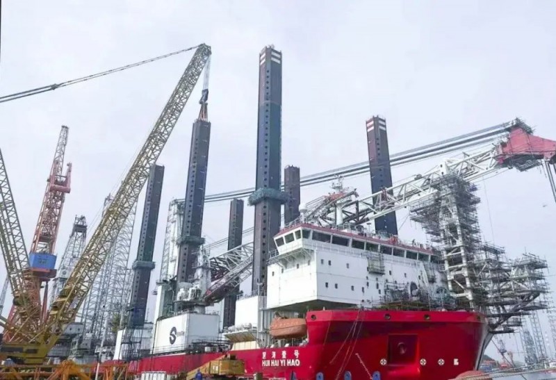 7月19日,随着1600吨履带吊平稳落钩,“慧海壹号”平台桩腿加长工程全部完成吊装定位。