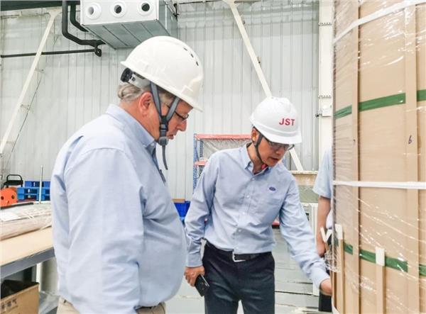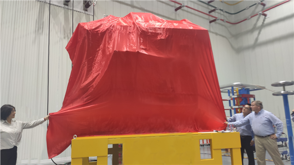 在公司重要客户及海风变团队的共同见证下,境外子公司总裁靖宇清女士、JST Power Equipment总经理Matthew Polk先生及分管海风变业务副总裁邸双奎先生一起揭开了产品的神秘面纱,它代表着创新与合作的精神,也象征着金盘科技在绿色能源领域迈向更高峰的决心。