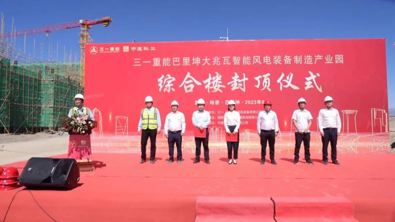 8月22日,三一重能巴里坤大兆瓦智能风电装备制造产业园综合楼顺利封顶,县委常委汤天慧出席封顶仪式。