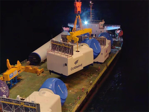8、9月的福建海域,平均风速约10米/秒,浪高达1.2米以上,单月吊装窗口期仅约15天,项目建设时间紧、难度大。为提升吊装效率,金风科技针对多项高耗时工序进行重点优化,如预安装吊装部件、优化摘钩条件、机舱轮毂一体化出厂、采用极简式海运工装快速拆卸叶片等,仅以上步骤的改良便可节约工时约26小时。