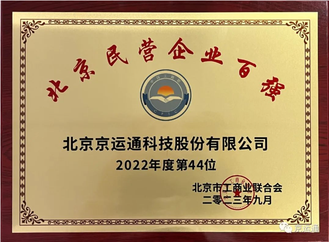 9月21日,北京市工商业联合会在京召开2023北京民营企业百强发布会,公布了2023“北京民营企业百强”榜单。北京京运通科技股份有限公司继2022年后再度入选2023北京民营企业百强榜,排名由第74位提升至第44位,再次彰显了其在北京市民营企业中的领先地位。