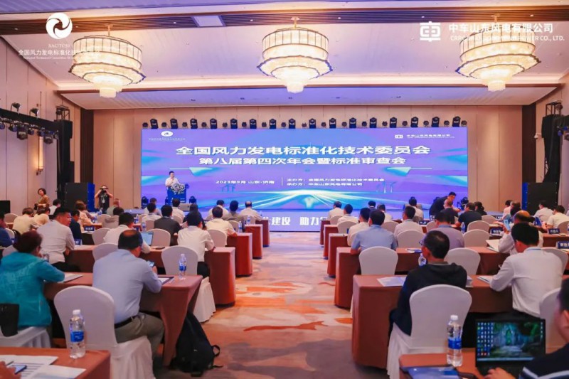 9月21日,中车山东风电公司承办的全国风力发电标准化技术委员会第八届第四次年会暨标准审查会在济南成功召开。中国农业机械工业协会风力机械分会常务副理事长兼秘书长祁和生,中国机械工业联合会标准工作部处长王墨洋,山东省市场监管局标准化处处长潘爱娟,中国中车副总裁余卫平,产业发展事业部副总经理周颜忠,中车山东风电公司总经理耿家声,副总经理吕超及来自全国各地70多家风电行业的120多名代表参加会议。会议由全国风力发电标准化技术委员会秘书长任君主持。