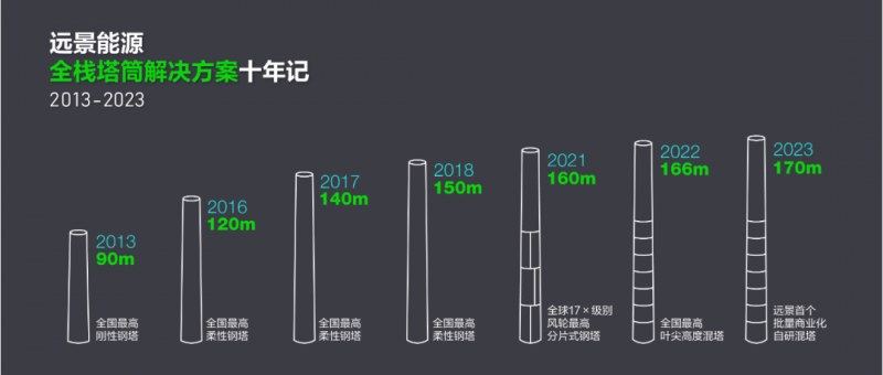 作为全球首个低风速风机、高塔架技术的倡导者,远景始终坚持用技术创新解决挑战,让更多风资源开发成为可能。从2016年全国首个批量120米柔性钢塔,到2021年全球最高160米分片式钢塔,到2023年首个自研170米批量混塔,基于远景独有的GTS塔架系统技术集成平台“发电量+安全+成本+交付周期”综合寻优算法,远景能源塔架全栈解决方案不断推陈出新,为每一个风场量身定制更安全、高效、经济的最优塔架方案。