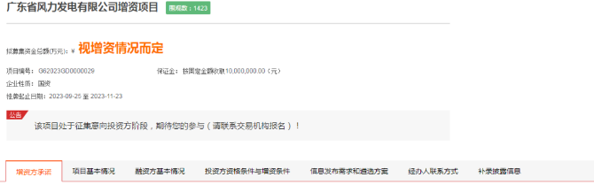 近日,广东省风力发电有限公司(以下简称“风电公司”)增资项目正式在广东联合产权交易中心公开挂牌。本次增资引进不超过10名战略投资者,增资后战略投资者持股比例合计不超过33%。