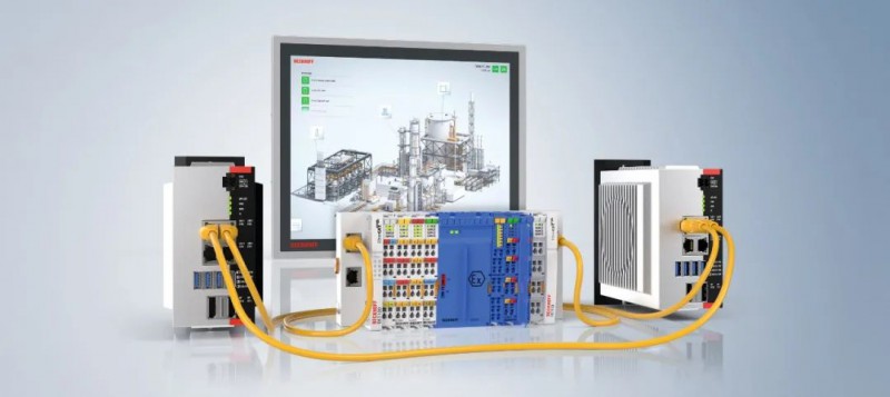 带工业 PC、耦合器、I/O、驱动器、继电器和系统模块的模块化系统安装在可扩展的底板上,可直接安装在设备上