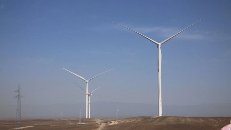 正在运行中的单机容量为6.5兆瓦的风机。巴里坤县融媒体中心记者 阿地拜克摄