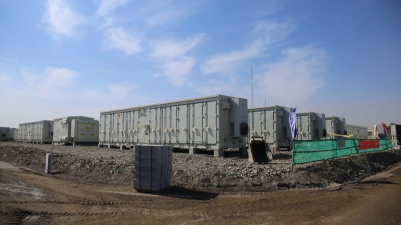 项目采用的磷酸铁锂电池储能系统250兆瓦电化学储能站。巴里坤县融媒体中心记者 阿地拜克摄