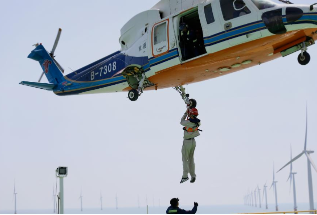 ▲大唐滨海公司组织员工开展直升机应急救援培训。