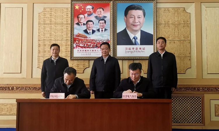 近日,中国东方电气集团有限公司与西藏自治区人民政府在拉萨签署战略合作协议。在西藏自治区党委书记王君正,自治区党委副书记、自治区政府主席严金海,东方电气集团党组书记、董事长俞培根共同见证下,西藏自治区党委副书记、自治区政府常务副主席陈永奇,东方电气集团党组成员、副总经理李忠军代表双方签字。