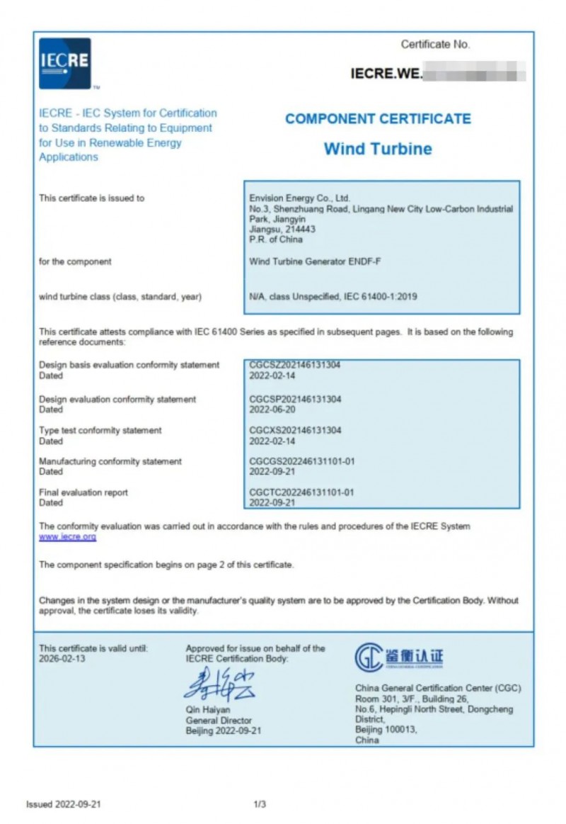 远景自研发电机率先引入了高速直冷、950V/1140V三电平、海上双馈等创新技术。基于供应链、质量、制造管理上的丰富经验和信息化优势,远景深度介入自研发电机生产的各个关键环节,引入BIQ系统严格管控关键过程参数,确保设计生产一致性。所有远景自研发电机均获得第三方机构部件认证,在国内率先获得更高标准的IECRE零部件认证,还依托欧盟及地方合规认证,随远景风机出口应用到法国等多个海外项目。