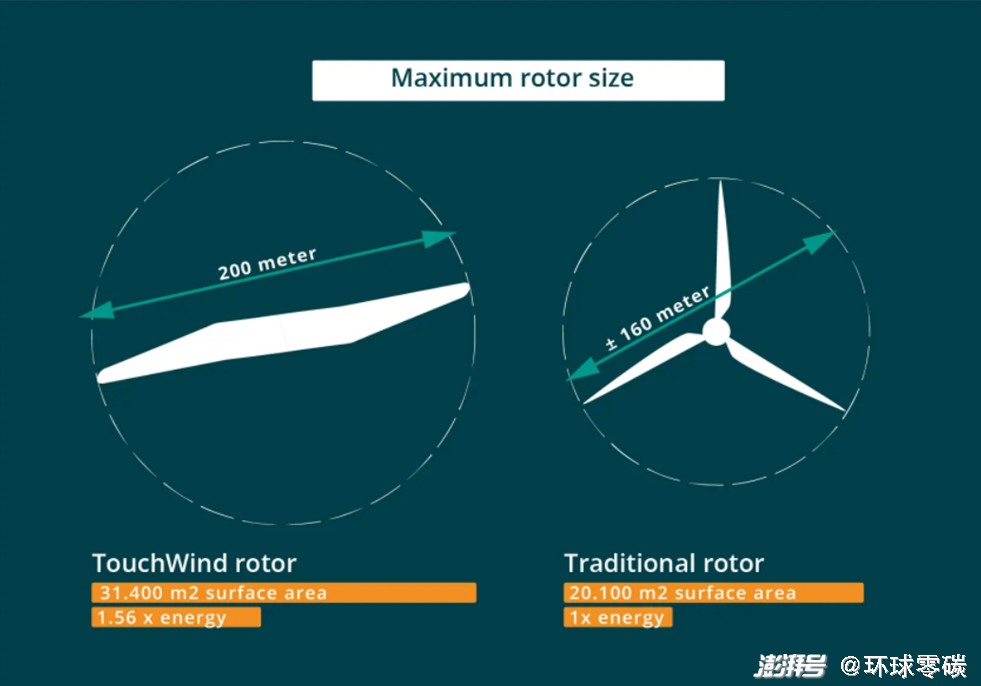 除了具备潜在的发电优势,Touchwind公司创始人兼首席执行官莱克斯·科力普还表示,与传统风机相比,由于叶片以及零部件用量更少,且不需要任何昂贵的主动叶片变桨控制系统,同等条件下单叶片风机成本可降低30%左右。Touchwind同时表示,这项设计可以满足12 MW 风机所需的200米长叶片,且能在港口制造并直接拖到现场。