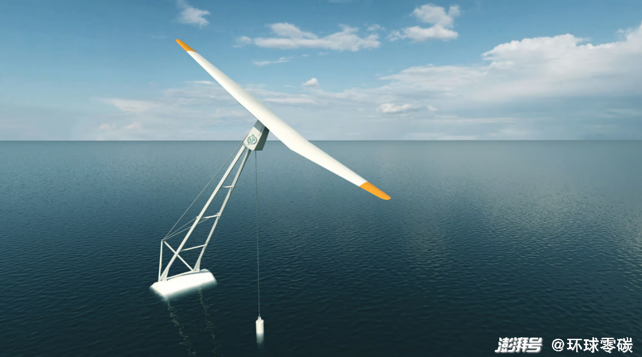 有别于传统像电风扇的三叶片风机,TouchWind公司研发的一体式单叶片浮式海上风机只有一片一体式转子叶片,看起来就像滑翔翼,中央垂挂一个筒状物,风机底部则是一个巨大的浮标。
