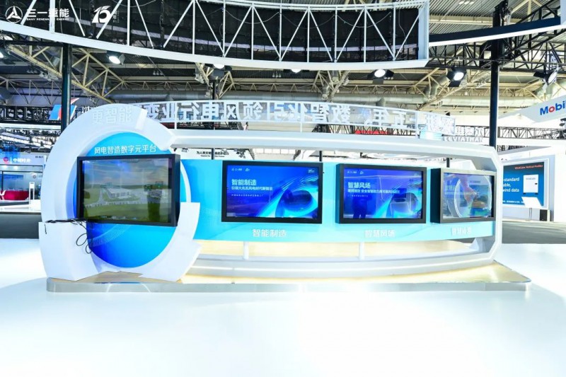 本次展会,三一重能在“十五年·更智能”展区里,展示了“数字元平台”、智能制造、智慧风场、智慧运营四大核心能力。全面介绍了三一重能从生产制造管理、工艺过程管控到风场运维服务的数智化应用,并且集成三一重能智慧运营平台。
