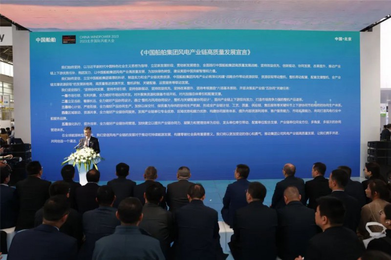 在CWP 2023“构筑全球稳定供应链、共建能源转型新未来”的主题下,大会发布了《全球风电产业链供应链安全宣言》,中国船舶集团风电产业链也随之发布了《高质量发展宣言》,表示中国船舶集团风电产业链将“坚持协同发展、坚持市场引领、坚持创新驱动、坚持效益优先、坚持改革提升、坚持考核激励”六项基本原则,并坚决落实产业链“协同开发、协同设计、协同生产、协同服务、协同管理”“五协同”关键任务,推动形成产业链上下游优势互补、抱团发力、协同共进的良好局面,为加快绿色转型、建设美丽中国贡献智慧和力量。