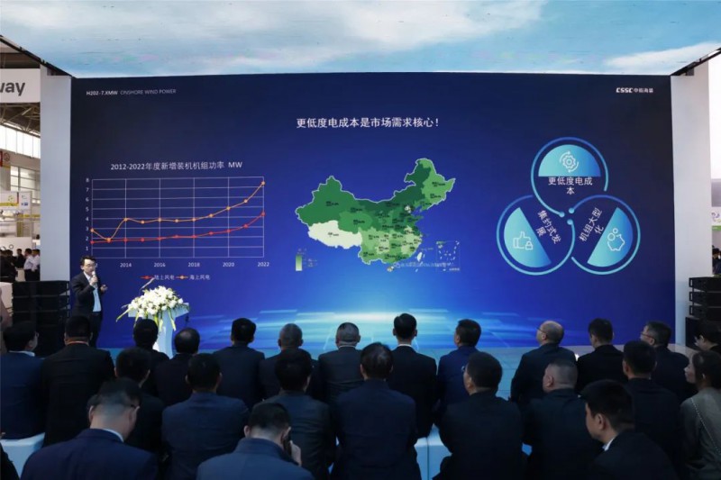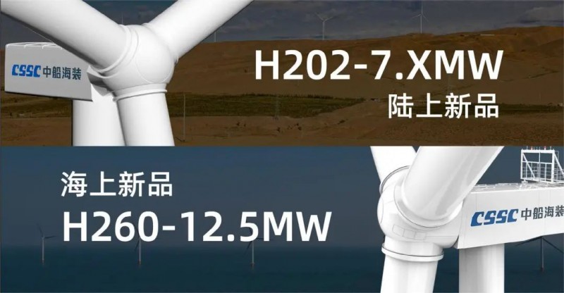 不止是风,更是海!在“双碳”目标有序推进,以新能源为主体的新型电力系统稳步构建的背景下,作为能源清洁化转型的主力军,风电行业进入前所未有的历史机遇期,中船海装牢牢抓住机遇,以科技创新为引领,加速产品迭代升级,针对陆上中低风速市场和平价海上风电发展趋势,在此次风能展上重磅推出了两款新品:H202-7.XMW陆上风电机组和H260-12.5MW海上风电机组。