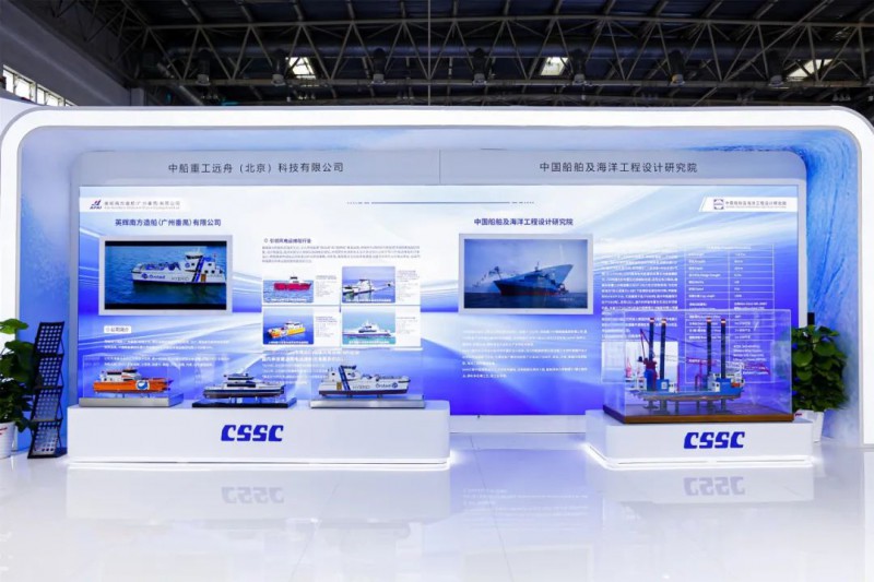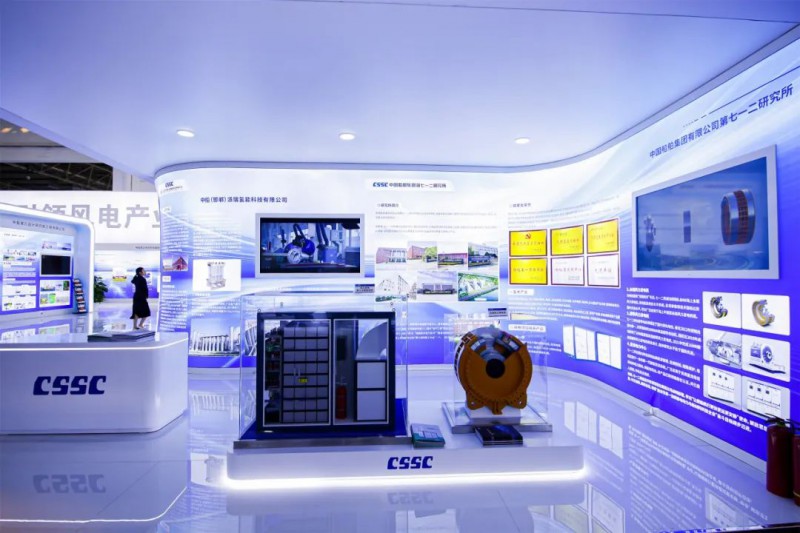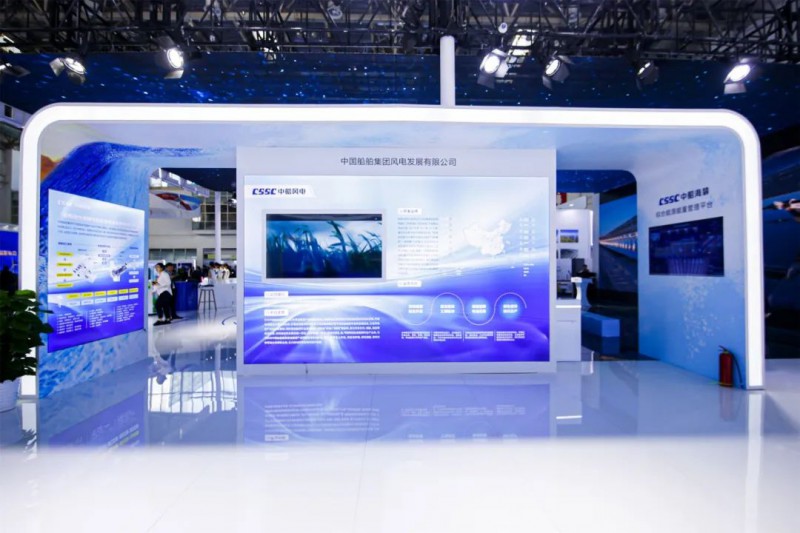 在900平米的巨大空间里,中国船舶展台按参展单位属性和功能被分为风电开发、装备制造、海洋工程、产业配套四大版块和互动服务区、活动发布区、产业协同展区、整机研制展区、产业投资展区、海洋工程展区、配套服务展区、推广展示区、商务洽谈区九大展区。通过统一化、规模化、系统化的集中展示,进一步增强了中国船舶集团风电全产业链的协同创新力、产业凝聚力和整体竞争力。