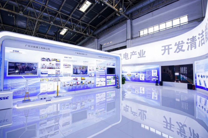 在细节设计上,则采用生态为先、大道至简、科技为尚三大设计语言,摒弃传统装饰材料,采用可重复使用的钢结构替代木结构,可降解的贴纸饰面替代涂料等。此外,中船海装还开展了“争做零碳星”等观众互动活动,让资源回收再利用成为展会上的一种新时尚。