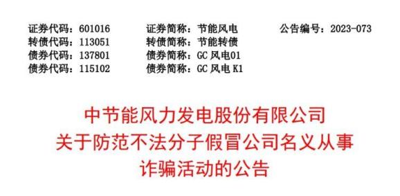 节能风电表示,为了保护人民群众的财产安全,避免人民群众遭受损失,公司通过公司官网、公众号等渠道第一时间向社会公众公布了防诈提醒,并于2022年1月18日向当地公安机关报案。