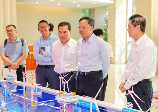 张传卫首先对廖增太到访明阳表示热烈欢迎,并与廖增太一行先后参观了明阳天成实验室、光伏技术研究院、绿电“氢氨醇”场景演示、智慧能源大数据中心等,过程中详细介绍了企业发展历程、产业布局、产品类型、技术研发、生产经营等情况。