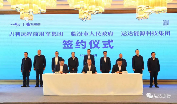 10月25日,运达能源科技集团股份有限公司与山西省临汾市人民政府、浙江吉利远程新能源商用车集团有限公司(以下简称:吉利远程商用车集团)在临汾市签订三方战略合作协议。临汾市委书记李云峰,市委副书记、市长王延峰;吉利控股集团高级副总裁俞学良,吉利远程商用车集团董事长周建群;运达股份党委委员、副总经理程晨光出席签约仪式。