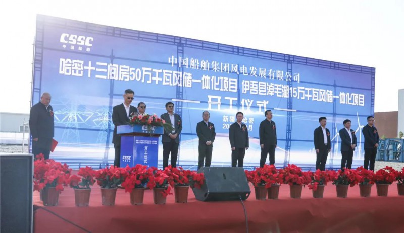 10月27日,中船风电哈密十三间房50万千瓦风储一体化项目和伊吾县淖毛湖15万千瓦风储一体化项目在中船海装新疆基地同日开工,这是继哈密十三间房100万千瓦风储一体化项目之后,中船风电、中船海装与哈密市央地携手合作的又一标志性成果,也预示着中船风电、中船海装在哈密的建设发展开启了崭新的篇章。