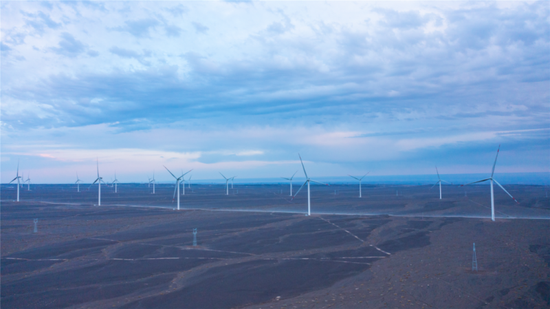 此次开工的两个项目均位于新疆哈密,属于典型的沙戈荒大基地项目。其中,哈密十三间房50万千瓦风储一体化项目位于哈密市伊州区十三间房区域,规划风电装机容量为50万千瓦,计划安装50台10MW风电机组,配套建设电化学储能项目5万千瓦。