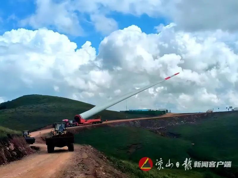 97.3米长的风机叶片像“倚天巨剑”一般驶向海拔3000多米的山脊。
