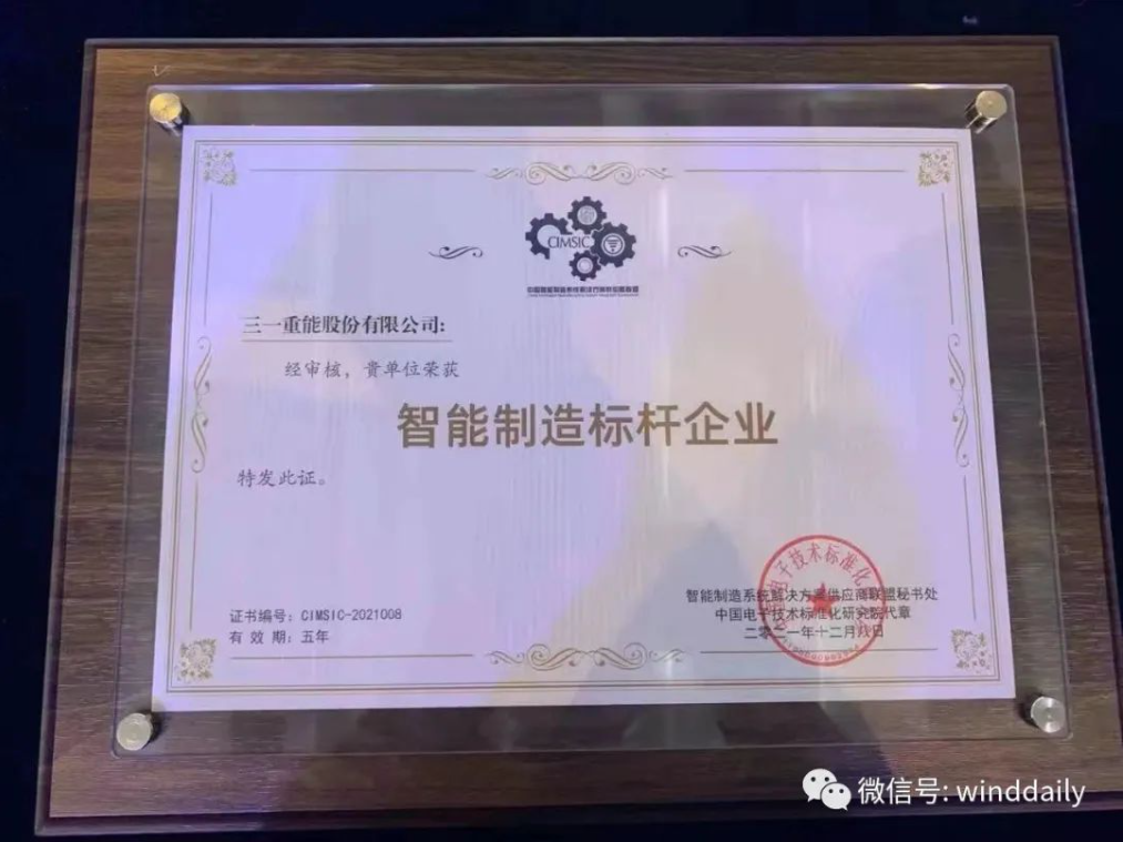 同年,三一重能智能制造迎来了高光时刻:被工信部认定为“智能制造标杆企业”,成为中国风电行业首个获此殊荣的企业。