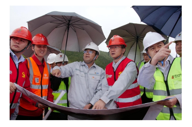 图说:8月2日 集团公司党组成员、总会计师陈西同志亲赴玛果梁子130兆瓦风电项目进行现场督导