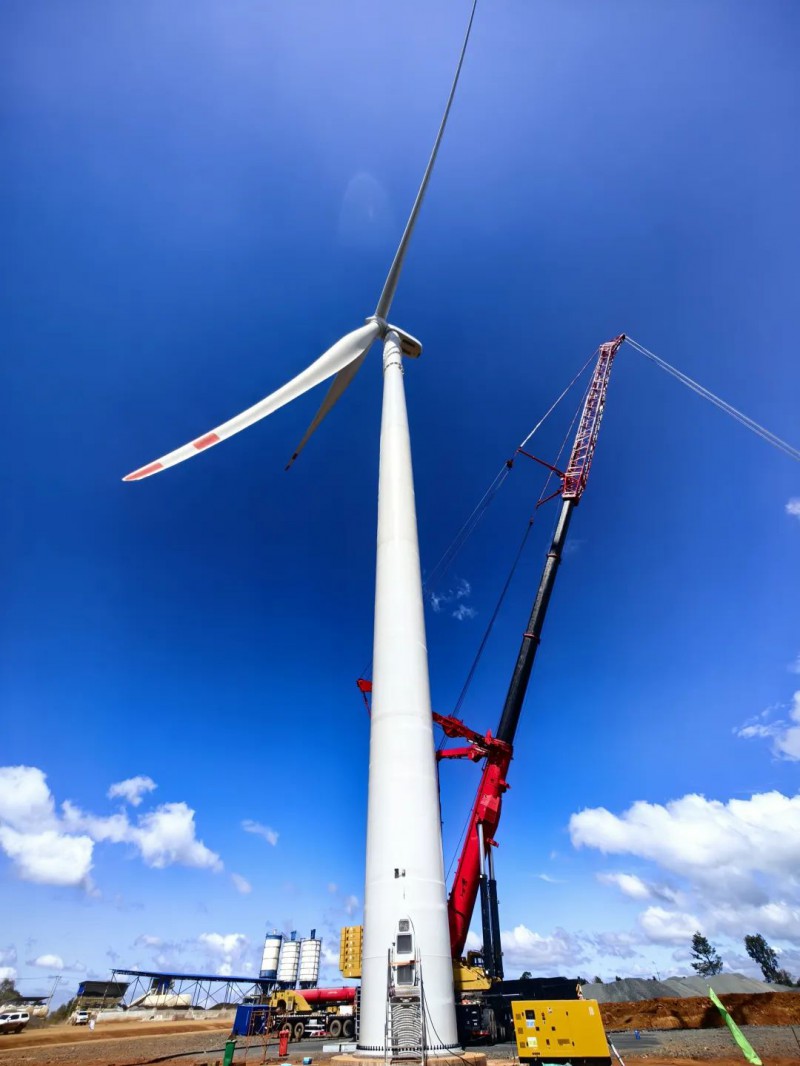 值得一提的是,在色贡省,中国电建还总承包建设了孟松600兆瓦风电场。该项目年发电量约17.2亿千瓦时,是老挝首个风电项目,于今年3月开工,目前首台风机已吊装成功,进入机组吊装全面启动阶段。建成后,主要向越南输送电力,使老挝首次实现新能源电力的跨境输送。两个风电场总装机容量将达到1600兆瓦,在预期寿命期内,将减少约9500万吨二氧化碳的排放。