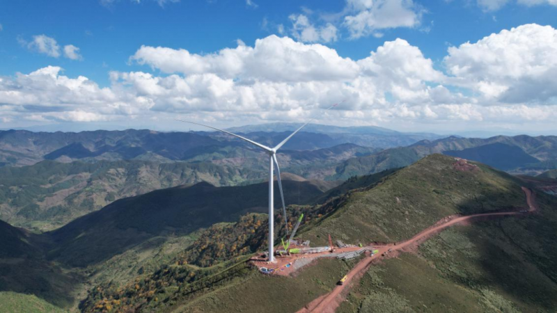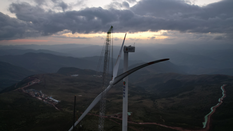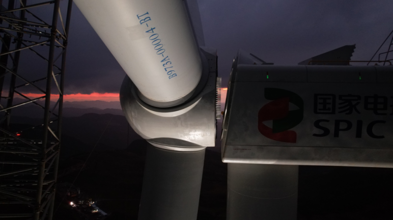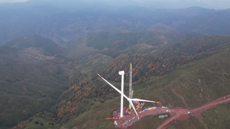为了安全、高效完成吊装,五冶项目团队在测算和实验中反复推演风机平面布置,提前做好场地规划、设备材料进场及风速预测等准备工作,确保在风速较小的作业窗口期进行叶轮与机舱的对接。“首个机组吊装的顺利完成是项目进度的重大节点性突破,让我们成功积累了大容量风机的高山吊装经验,也为项目全容量并网投产奠定了坚实基础!”中国五冶集团项目负责人付兴祥激动地说。