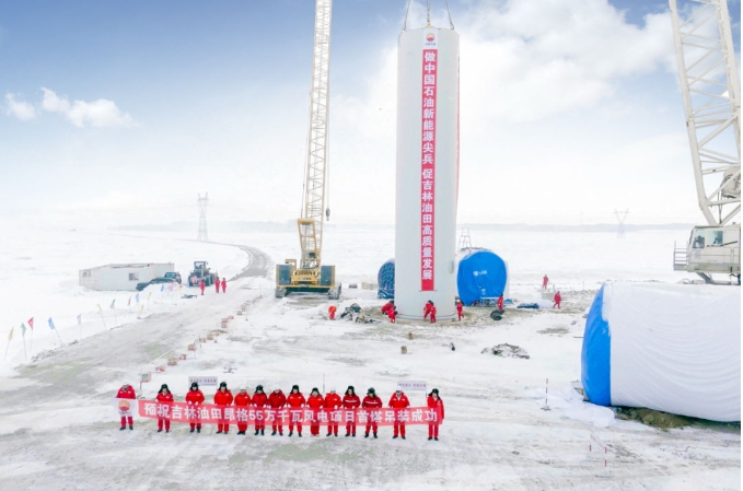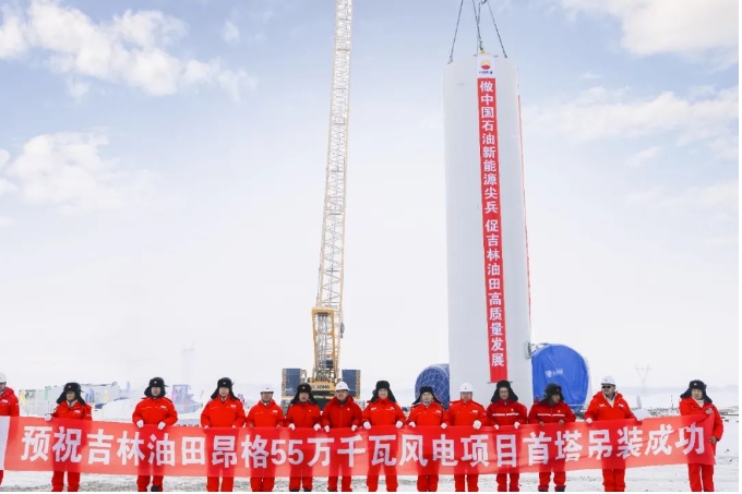 吉林油田55万千瓦风电工程,单机容量6.25MW,总安装容量55万千瓦,配套建设220kV、610MVA升压站一座、35kV集电线路160余km、维检修道路100余公里、外送220kV线路15余km,工程总投资25.5亿元。工程计划2023年12月31日实现220kV升压站主体设备安装、56台风机组立、集电线路基础浇筑完成、维检修道路施工全部完成等关键节点,预计2024年6月全部建成投运。项目投运后可实现年发绿电量16.3亿千瓦时,每年可节约标准煤约49.7万吨,减少二氧化碳排放量约128.8万吨、二氧化硫排放量约0.94万吨、氮氧化物排放量约1.41万吨。