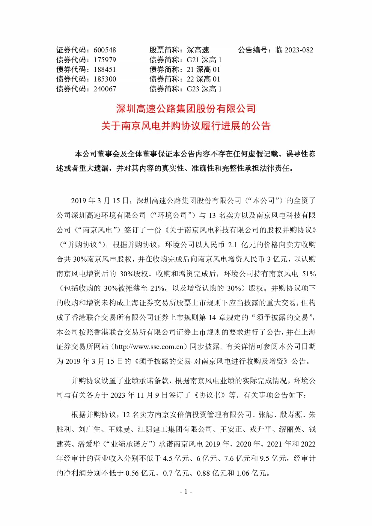近日,深高速发布《关于南京风电并购协议履行进展的公告》。