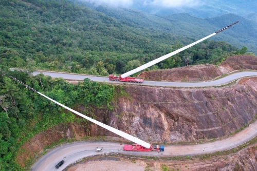老挝孟松风电项目叶片山地运输