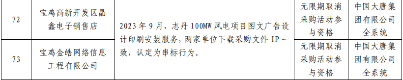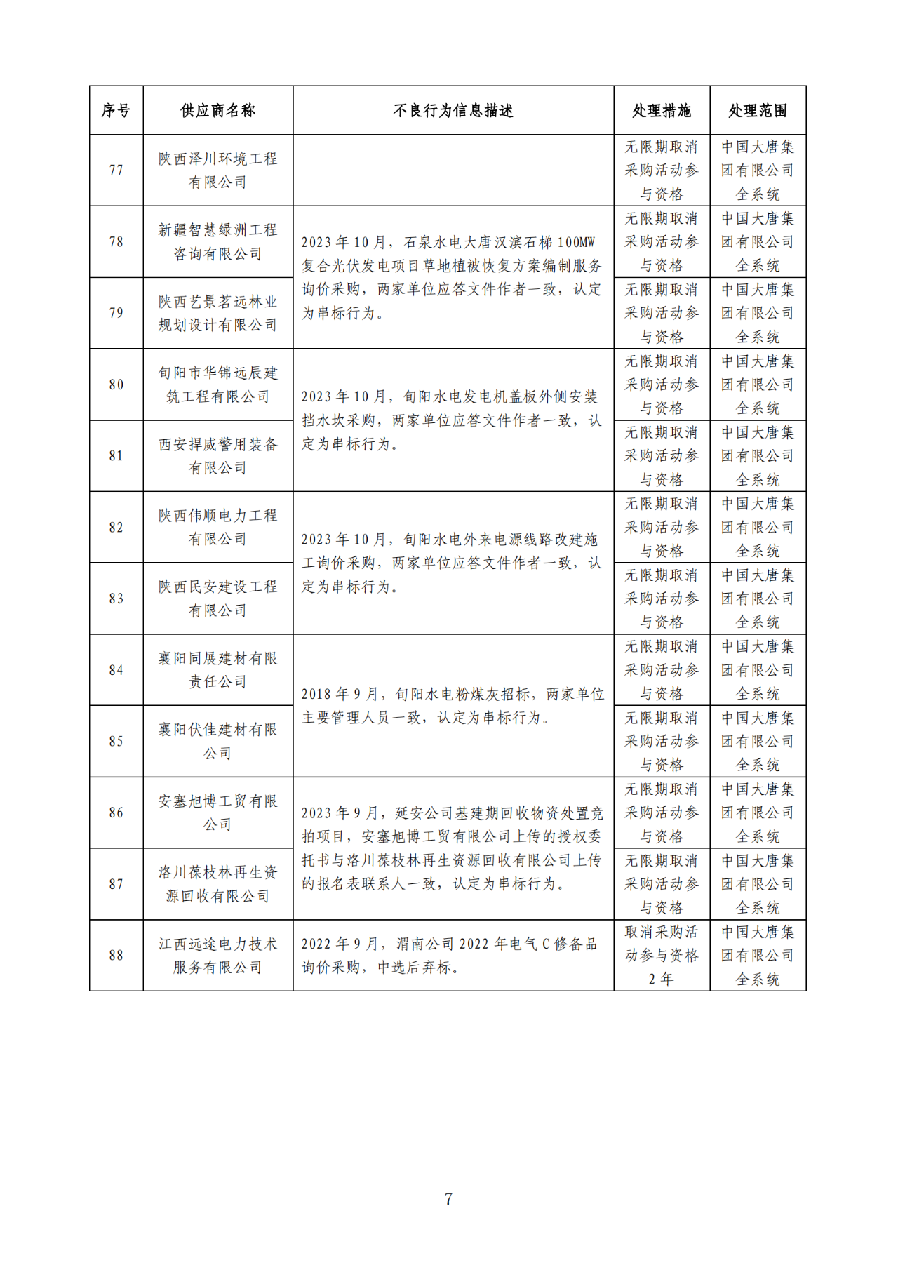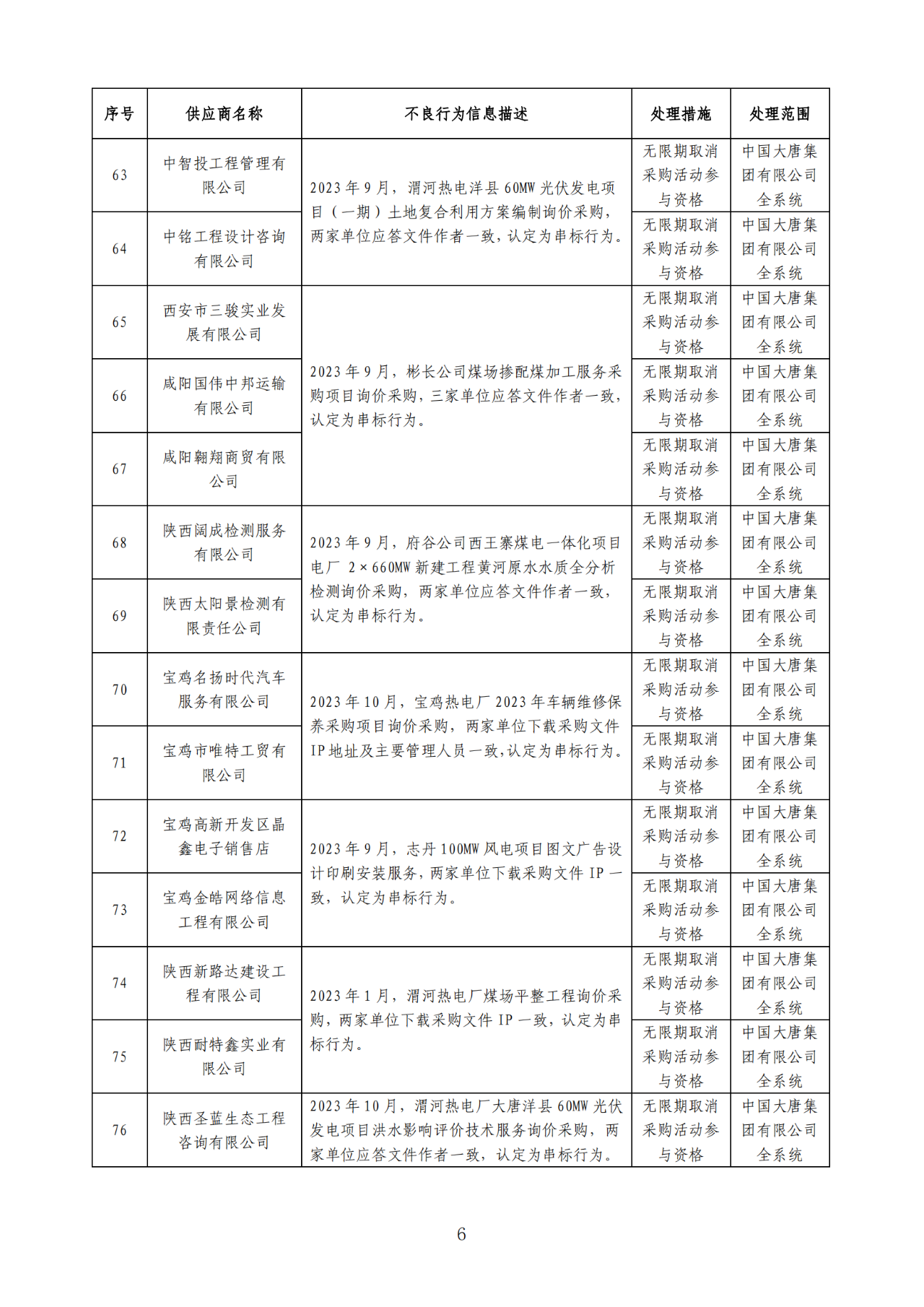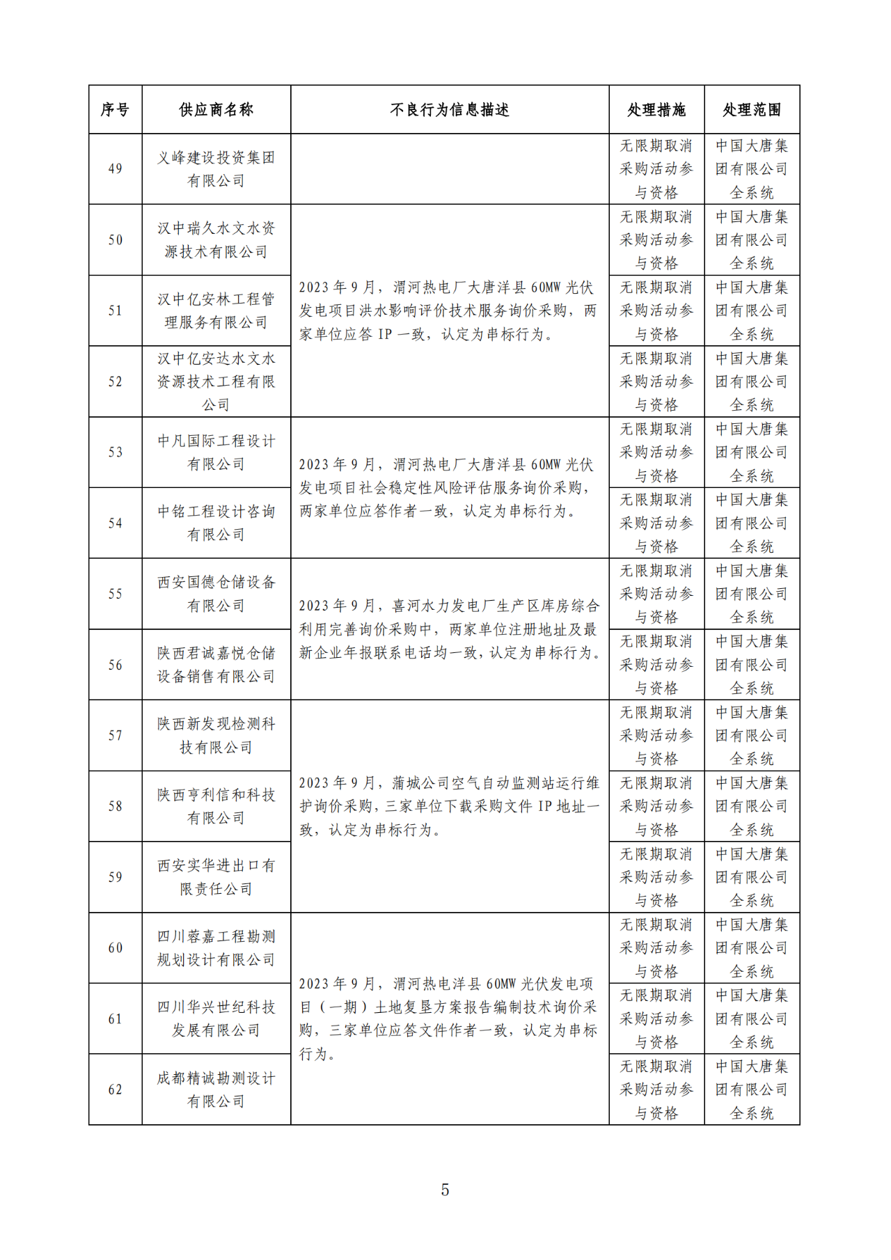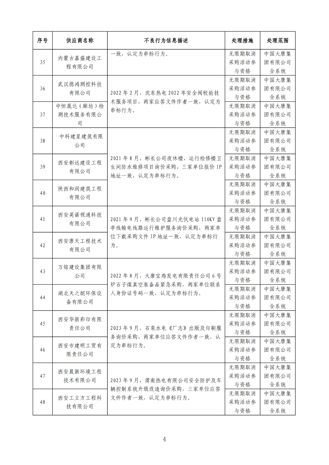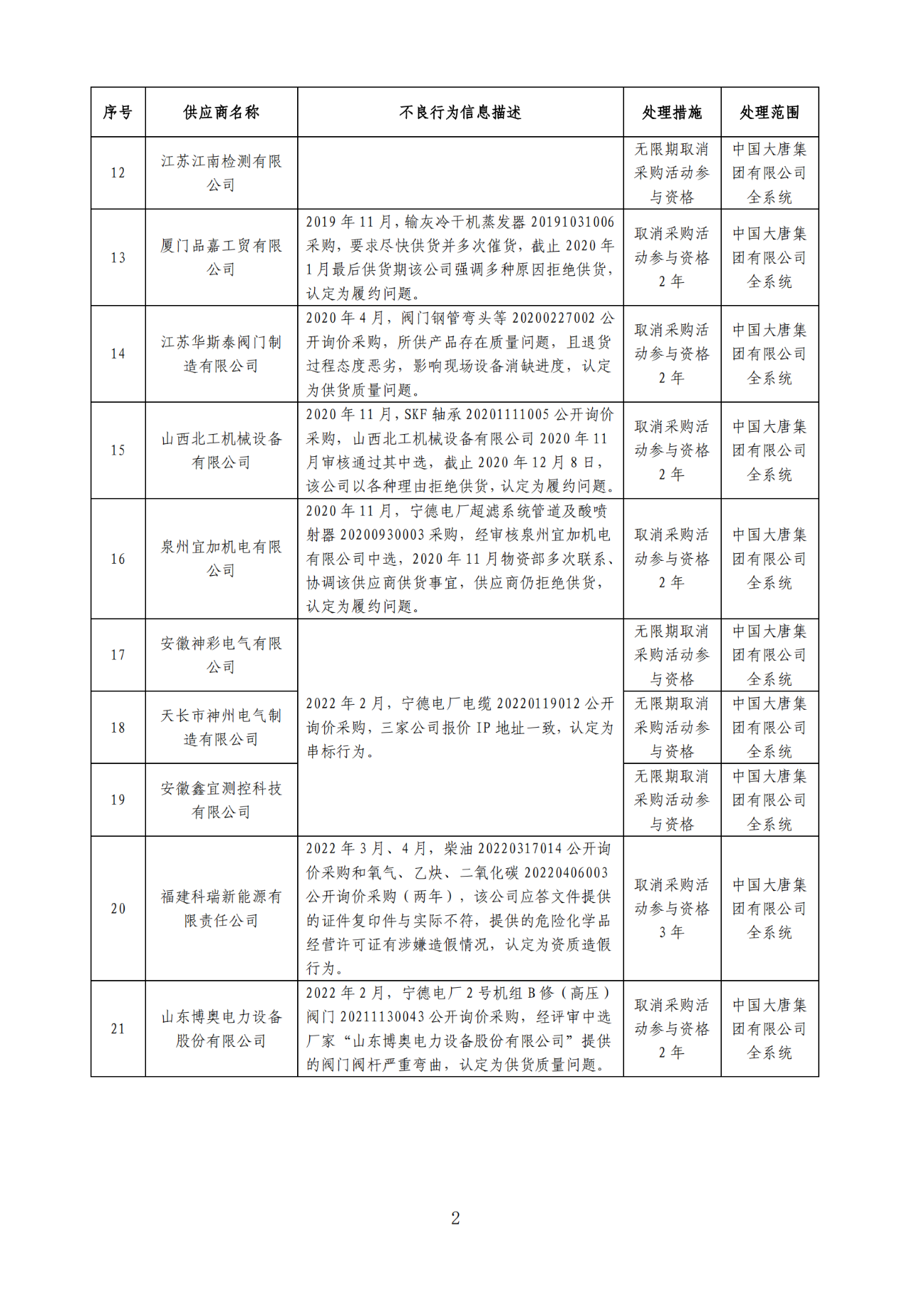 中国大唐集团有限公司关于供应商不良行为处理情况的公告(2023年第13批)