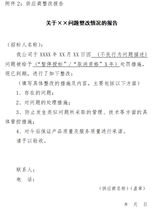 3.对于服务、诚信等问题,供应商应制定整改措施, 并做出不再发生类似问题的书面承诺。