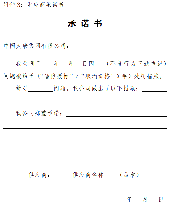 为促进供应商诚信履约,保证产品质量、服务水平,依据《中国大唐集团有限公司供应商管理办法》有关规定,对出现不诚信行为、履约不力以及产品质量等问题的供应商进行了处理,具体处理情况如附件1所示。