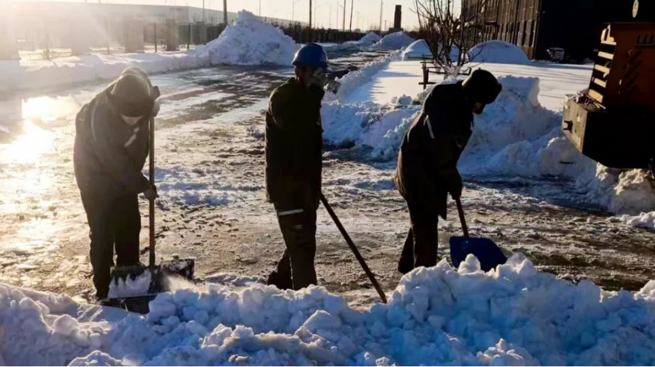 11月5日、6日,东北地区普降暴雪,松原市启动暴雪极端天气二级应急响应。为保障各项生产任务顺利完成,避免因道路积雪影响生产,大部分通勤员工选择留宿在园区内。暴风雪过后,吉林公司立即组织人员清理作业区积雪,做好防滑防冻措施,及时组织清理和维护设备,确保正常作业环境。大家冒严寒、战风雪,齐心协力在厚重的积雪中开辟出运货通道,全力保障生产任务按时完成。