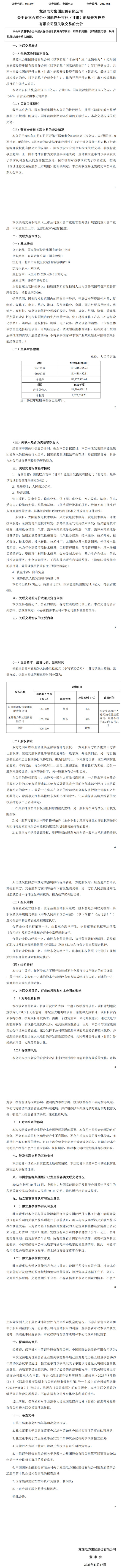 【国际能源网 讯】11月17日,龙源电力集团股份有限公司(简称“龙源电力”)发布《关于设立合营企业国能巴丹吉林(甘肃)能源开发投资有限公司暨关联交易的公告》。