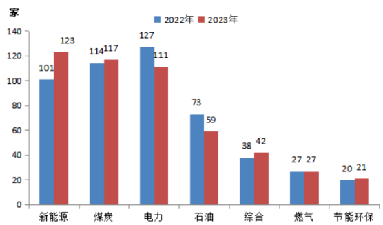 受以上因素影响,2023中国能源企业(集团)500强(以下简称“500强”)营收规模保持高速增长,“500强”营收总额稳步提升,首次突破30万亿元大关,达到32.47万亿元。较上年增加4.60万亿元,同比增长16.50%。特别是新能源行业迅猛发展,入选企业数量达到123家,同比增加22家,首次取代电力,跃居第一。