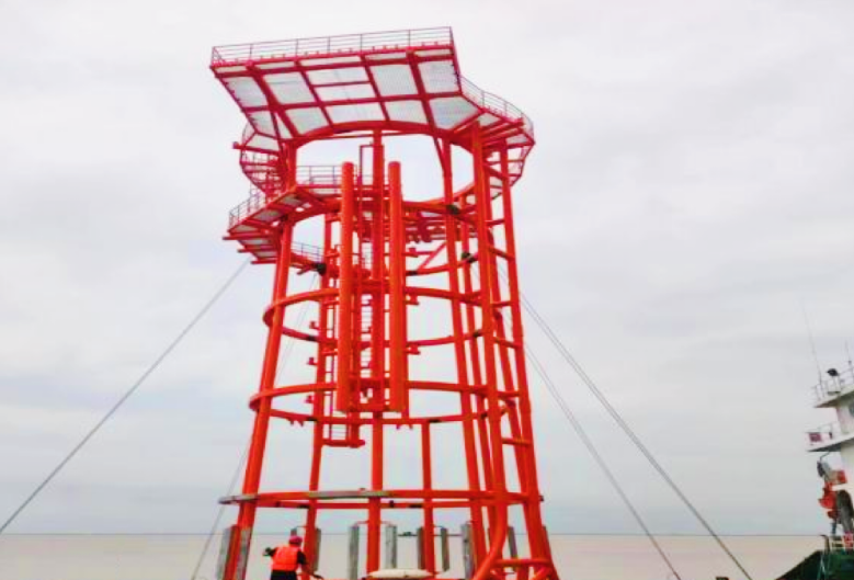 该项目涵盖15根单桩、12个套笼,此次交付的套笼高度约26米,直径7.9米,重量约125吨。