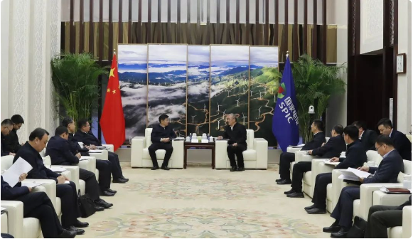 11月28日,国家电投董事、总经理、党组副书记栗宝卿在总部会见内蒙古自治区党委常委、自治区常务副主席黄志强,就深化企地合作进行交流。国家电投党组成员、副总经理徐树彪参加。