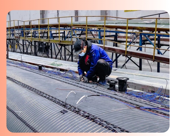 在东方风电天津基地,职工正在进行B1080A型叶片制造测试相关工作。