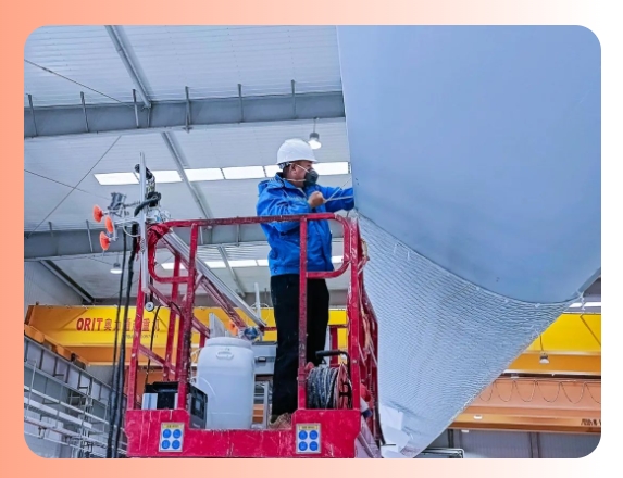 在东方凉山风电,技改成员正在叶片内部进行打磨作业。项目现场组建技改小组,从铺层、合模、灌注班组融合骨干,全力对雅砻江二期项目叶片进行技术改造,向全年任务目标发起冲刺。