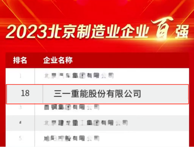 近日,北京企业联合会、北京市企业家协会正式揭晓了“2023北京企业100强”榜单,三一重能荣登“2023北京企业百强榜单”、“2023北京制造业企业百强榜单”。