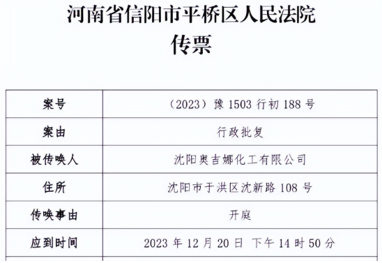 2023年12月1日,中国风电润滑油龙头企业沈阳奥吉娜化工有限公司(下简称奥吉娜公司)收到河南省信阳市平桥区人民法院开庭传票,奥吉娜公司诉信阳市生态环境局和第三人华阳长青投资有限公司行政诉讼案,将于2023年12月20日14时50分开庭审理。届时,这起风电润滑油央企招投标“民告官”第一案结果如何,让我们拭目以待。